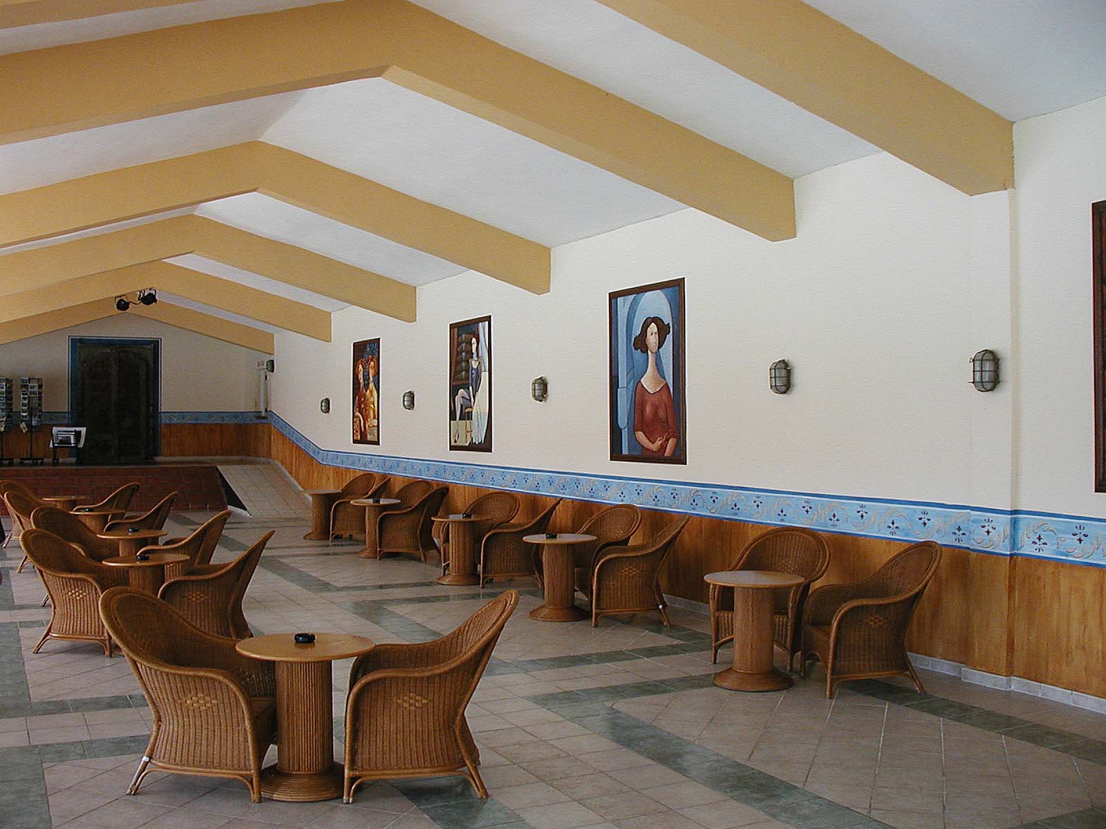 nel grande salone centrale – bellissimi murales tropicali di donne