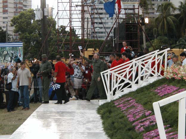 Fidel Castro saluta i vincitori della simulazione dell'assalto simbolico